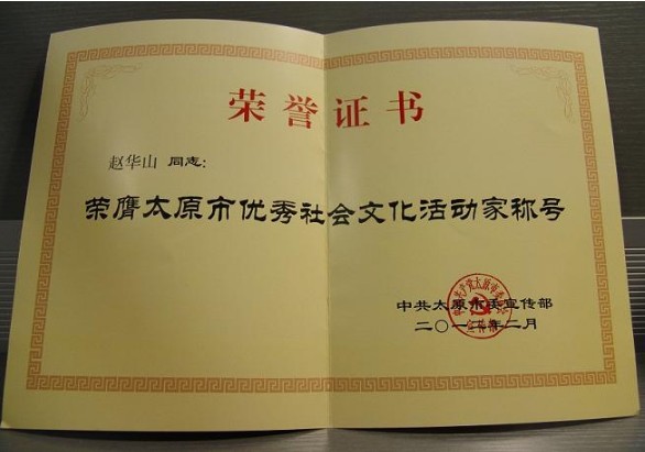 趙華山董事長(zhǎng)榮獲“太原市優(yōu)秀社會(huì)文化活動(dòng)家”稱號(hào)