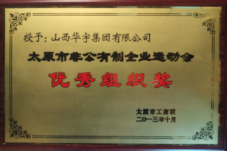 日前,太原市工商聯(lián)召開工作會議,對參加太原市首屆非公有制企業(yè)運(yùn)動會的單位和個(gè)人進(jìn)行表彰。山西華宇集團(tuán)有限公司榮獲太原市首屆非公有制企業(yè)運(yùn)動會“優(yōu)秀組織獎”。