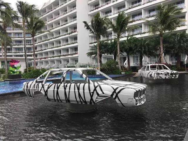 這些裝置或雕塑散落在三亞華宇酒店的四處,如沙灘上的“眺望臺”等,與游客產(chǎn)生交流。