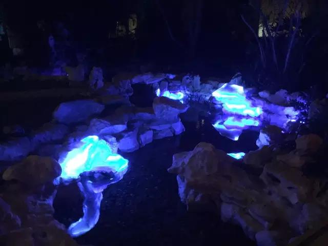 劉佳玉作品現(xiàn)場,在夜晚的水池里,發(fā)光的石頭